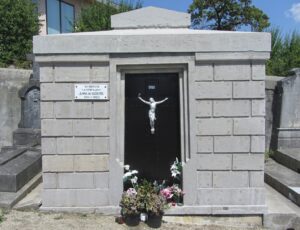 Familiengrab in Annecy-le Vieux mit der Tafel “hier ruht die ehrwürdige Anna de Guigne” (Klick für Vergrösserung).