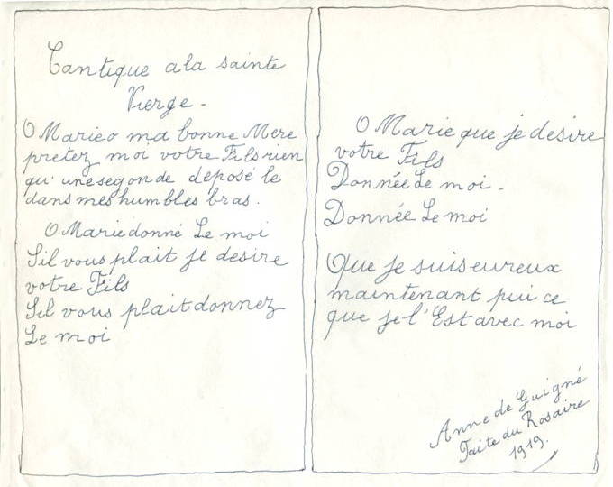 Handschriftliches Hingabe-Gebet der kleinen Anna an die heilige Jungfrau Maria