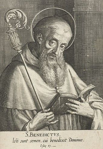 Benedikt von Nursia wurde 480 als Sohn einer wohlhabenden Familie geboren. Seine Zwillingsschwester war die später ebenfalls als Heilige verehrte Scholastika.