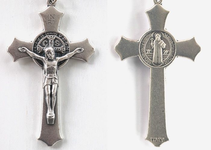 Der hl. Benedikt war einer der größten Wundertäter der Kirchengeschichte. Viele Wunder schrieb schon der hl. Papst Gregor der Große (+604) nieder. Papst Leo IX. (+1054) berichtete, dass er während einer Krankheit eine glänzende Leiter sah, auf der der Mönchsvater niederstieg und ihn mit dem Kreuz in der Hand segnete. 1741 bestätigte Papst Benedikt XIV. die Benediktusmedaille und gab zugleich vor, dass die Medaille aus Metall sein müsse und genau nach dem Vorbild der bis anhin bekannten Medaille sein muss. Ebenso approbierte er die Gebetsformel und gab somit das Recht zur Weihe der Medaille. Die Weihegebete spenden insbesondere seelischen und leiblichen Schutz und Segen, insbesondere gegen dämonische Einflüsse und Angriffe. Viele tragen diese Medaille ähnlich wie die Wundertätige Medaille zwecks Abwehr böser Mächte und als Trost und Hilfe in der Sterbestunde am Hals – oder eben am Rosenkranz. Das Benediktuskreuz bzw. die Benediktusmedaille wird auch gerne an Häusern über den Türen und an Ställen angebracht.