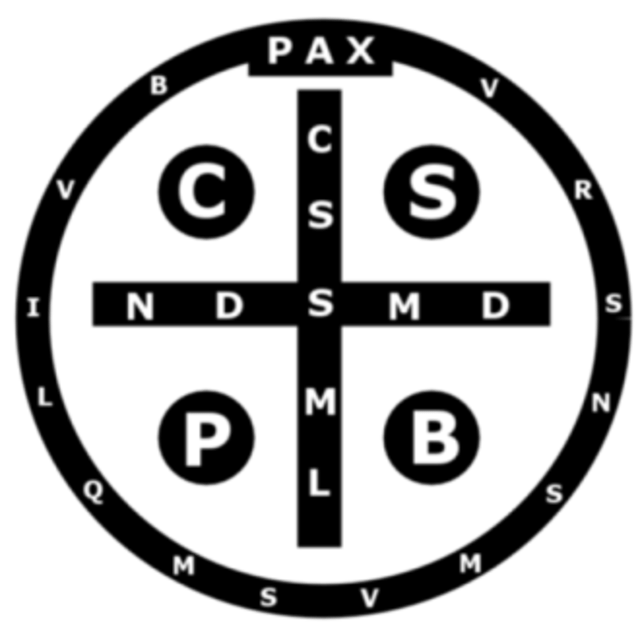 CSPB (Crux Sancti Patris Benedicti – „Kreuz des heiligen Vaters Benedikt“).