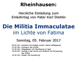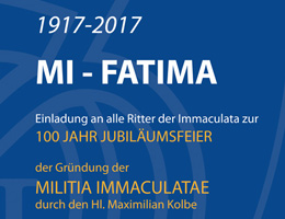 MI- FATIMA 2017 –  Einladung an alle Ritter der Immaculata zur 100 JAHR JUBILÄUMSFEIER der Gründung der MILITIA IMMACULATAE durch den Hl. Maximilian Kolbe – Mit Predigt von S. E. Bischof Bernard Fellay und Weiheakt an die Immaculata – Sonntag, 20. August 2017 – Anschließend an das offizielle Programm derWeiterlesen →
