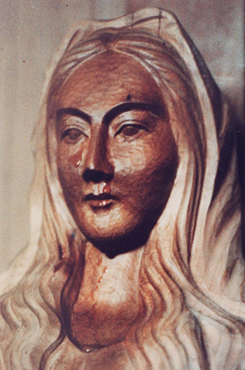 Am 4. Januar 1975 begann die Statue der Madonna in der Kapelle der “Dienerinnen der Eucharistie” Bluttränen zu weinen bis zum 15. September 1981, 101 Mal. Der Diözesanbischof, Monsignore Ito, war Augenzeuge vom Tränenfluss. Am Tag, als der Tränenfluss begann, erschien der Engel der Schwester Agnes, und sagte: „Du brauchst nicht verwundert zu sein, die heilige Jungfrau weinend zu sehen. Denn eine einzige Seele, die sich bekehrt, ist sehr wertvoll für ihr Herz. Sie zeigt ihren Schmerz, um euren Glauben zu beleben, der so schwach und zerbrechlich ist. Jetzt, da ihr ihre wertvollen Tränen erblickt habt, und um SIE zu trösten, sprecht mutig davon und verbreitet diese Verehrung zu ihrem Ruhm und dem ihres Sohnes.”
