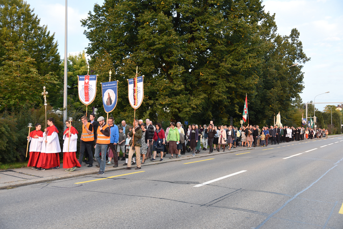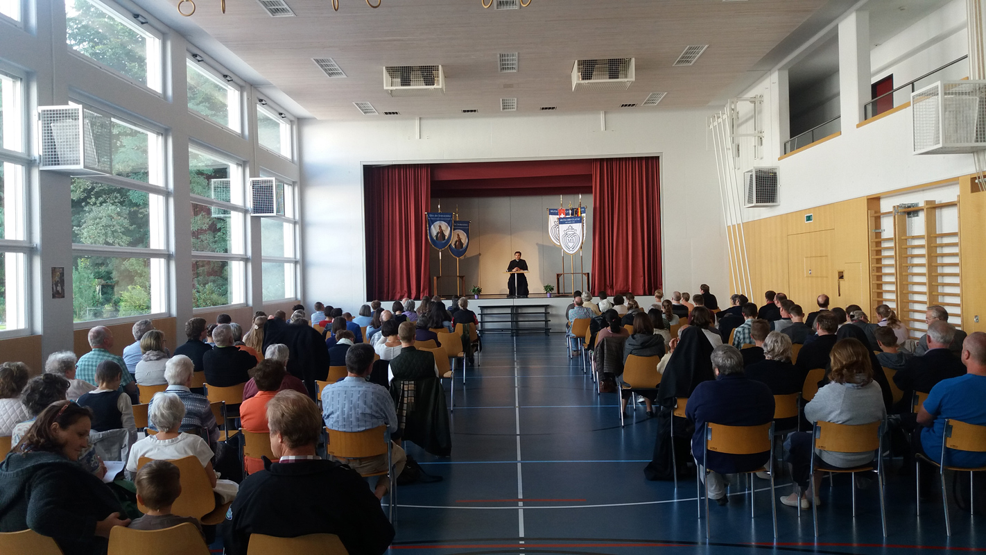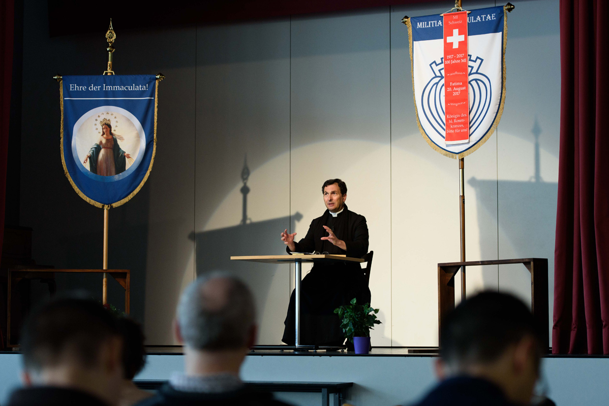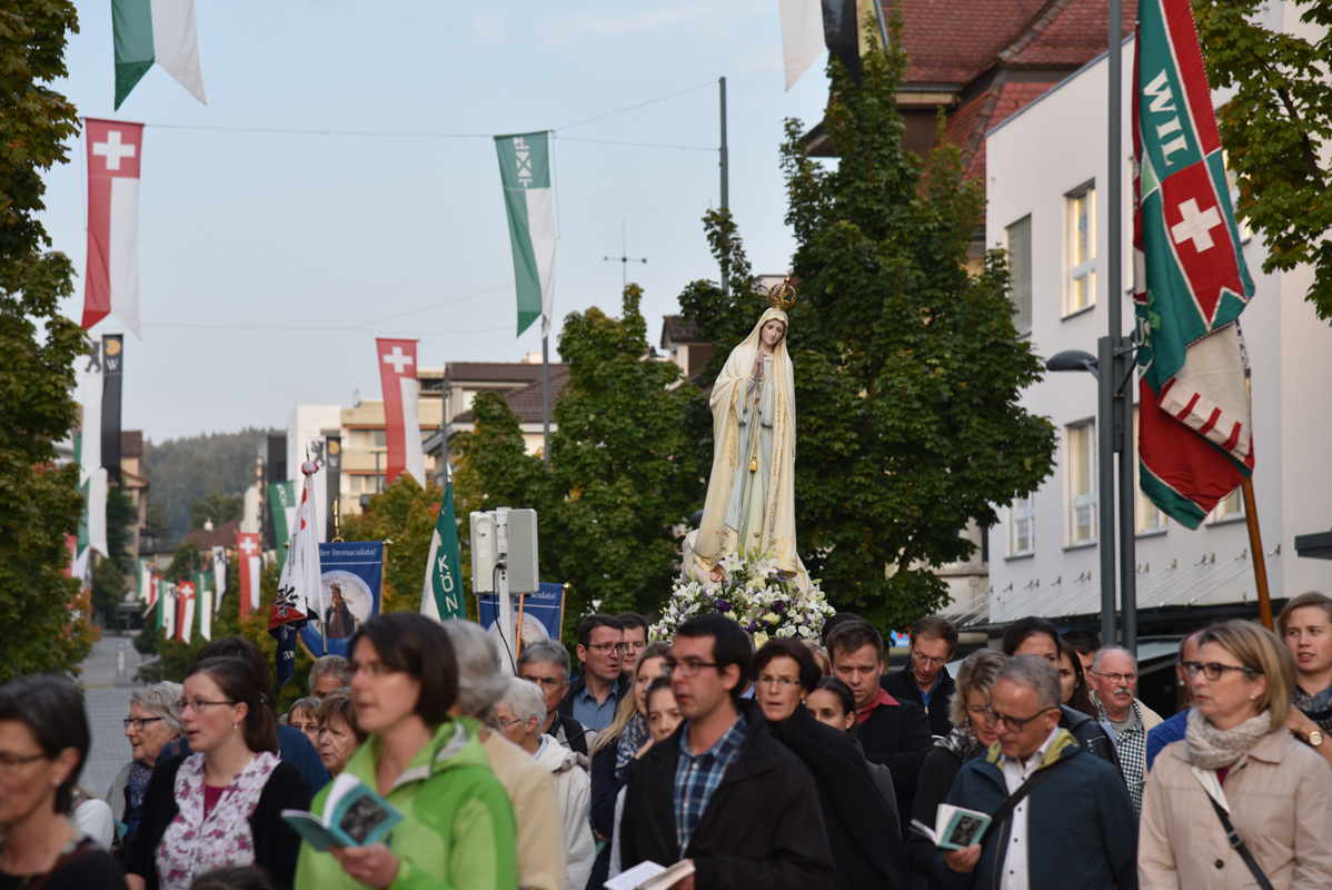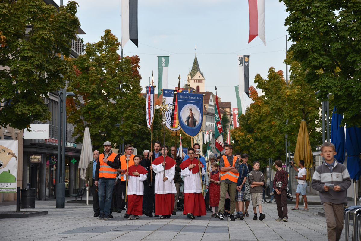 Erhalten Sie einen Eindruck zur marianischen Mission, während der Pater Stehlin drei Tage mit Predigten und Vorträgen in Wil verweilte. Am Samstagabend nahmen bis zu zweihundert Teilnehmer an der feierlichen Prozession durch die Stadt teil und am Sonntag durften fünfundzwanzig neue Ritter in die Militia Immaculatae aufgenommen werden. Einen erweiterten Bericht finden Sie hier und die Vorträge werden in Kürze folgen.