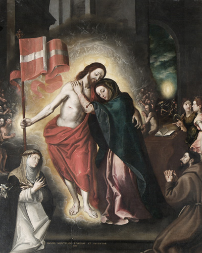 Man kann gar nicht zweifeln, dass die Heilige Jungfrau die erste war, der unser Heiland nach seiner Auferstehung erschienen ist. Da sie bei seinem Tod von allen Geschöpfen am tiefsten mitgelitten hatte, so verdiente sie auch vor allen anderen, zuerst an der Freude seiner Auferstehung teilzunehmen. Es liegt nun nahe, anzunehmen, dass sie am dritten Tage frühmorgens zum Grabe ging und in heißem Gebete nach der Ankunft ihres Sohnes verlangte. Sie wusste, am dritten Tage würde er auferstehen. Er hatte es oft und deutlich genug vorausgesagt. Die Klarheit dieser seiner Prophezeiung veranlasste ja sogar die Pharisäer, eine Grabeswache von Pilatus zu erbitten: „Herr, es ist uns eingefallen, dass jener Betrüger, als er noch lebte, gesagt hat: Nach drei Tagen werde ich auferstehen. Befiehl also, dass das Grab bis zum dritten Tage sicher bewacht werde” (Mt 27,63). Während also Maria in tiefster Sammlung am Grab betete, erscheint ihr der Herr im Glanze seiner Herrlichkeit. Welch eine Freude muss das für Mutter und Sohn gewesen sein! Der Heiland wird ihr die Tränen von den Wangen gestrichen haben. „Der Allmächtige wischt ab die Tränen“ (Is 25,8). Maria aber konnte mit dem Hohenliede beten: „Ich habe gefunden, den meine Seele liebt. Ich halte ihn fest und lasse ihn nimmer los“ (Hl 3,4).