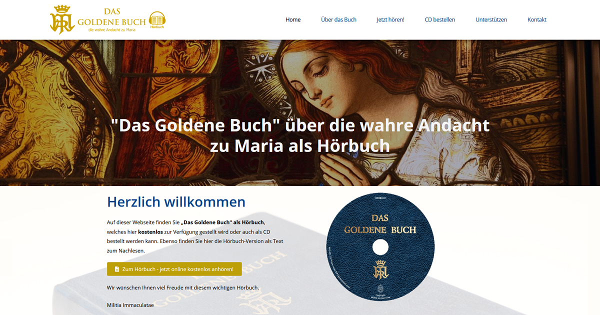 Angeregt und finanziert durch einen Gönner wurde in den letzten Monaten intensiv daran gearbeitet, das ganze Goldene Buch (ohne den Gebetsteil) zu vertonen. Ein professioneller Sprecher hat den 15-stündigen Inhalt produziert. Nun ist dieses Hörbuch als CD erhältlich.