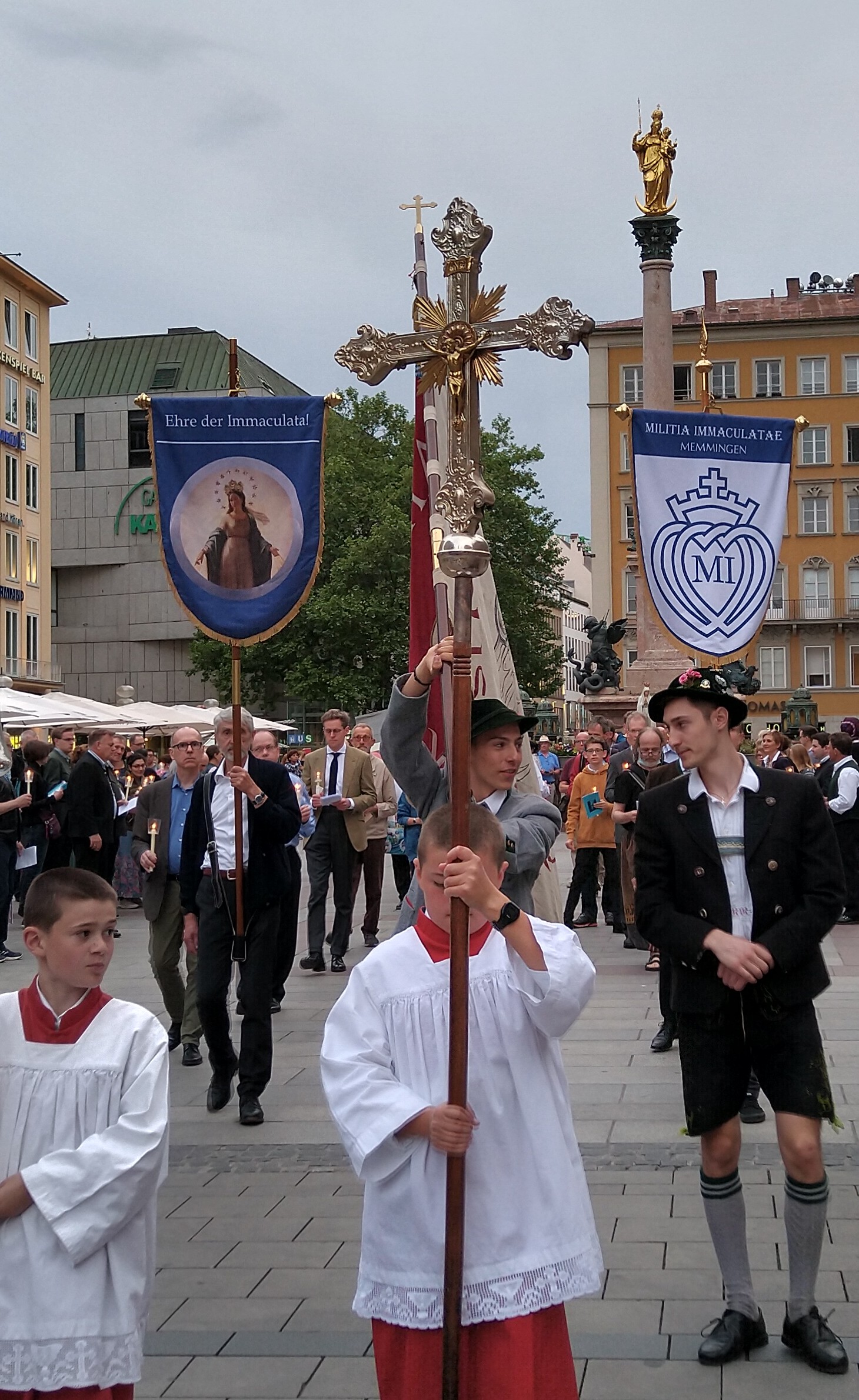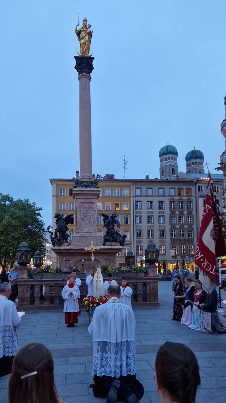 Am Sonntagabend, 22. Mai 2022, fand im Rahmen einer Fatima-Lichterprozession in München bei der Mariensäule die Weihe Bayerns an das Unbefleckte Herz Mariens statt. Teilgenommen bei dieser schönen Prozession haben gegen 250 Personen. Die Weihe an das Unbefleckte Herz Mariens geht auf den Wunsch der Mutter Gottes zurück, wie sie sich 1917 in Fatima offenbarte, hat aber in Bayern eine besondere Tradition.