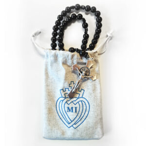 Die Rosenkränze werden in einem robusten Leinenbeutel mit aufgedruckten MI-Emblem geliefert, in welchem auch unsere Rosenkranzbroschüren Platz haben.