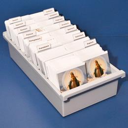 – befüllt mit Faltblättern zur Wundertätigen Medaille in 14 Sprachen