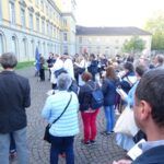 Singend und betend, liefen wir am Rheinufer entlang in Richtung der Universität bis zum Hofgarten.