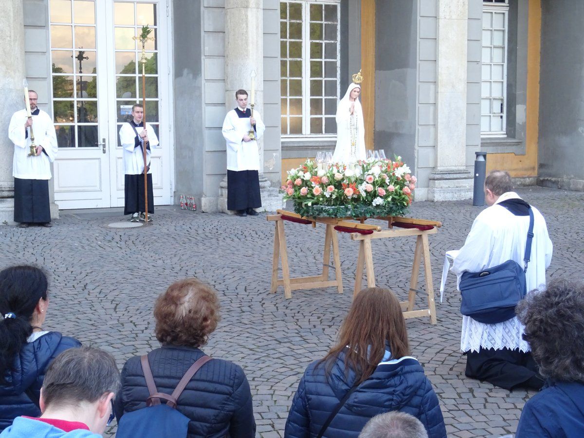 Bei aller Tragik unserer Tage ist es erfreulich, dass an vielen Orten in Deutschland, in der Schweiz und Österreich, Rosenkranzgruppen entstanden sind, welche sich an jedem Mittwoch zusammenfinden, um in der Öffentlichkeit den Rosenkranz zu beten. Immer mehr Menschen wachen auf und setzen ihr Vertrauen ganz auf das Unbefleckte Herz Mariens. Und das wollen auch wir tun. In der Botschaft von Fatima heißt es, dass es „nie zu spät sein wird, Zuflucht bei den Herzen Jesu und Mariens zu suchen!“ Jedes Strafgericht kann entweder verhindert oder abgemildert und verkürzt werden, wenn sich wenigstens eine kleine Herde von “Gerechten“ findet, die freiwillig Sühne leistet. Fatima ist das Bemühen des Himmels, diese kleine Herde unter dem Schutzmantel Mariens zu versammeln, um den drohenden Untergang ganzer Völker abzuwenden!
