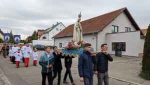 Am Samstag, den 13. Mai 2023 fand in Memmingen eine Fatima-Prozession statt, zu der auch Gläubige aus den umliegenden Gemeinden Göffingen, Bodelsberg, Königsbrunn und Neuglabonz gekommen waren.