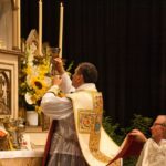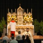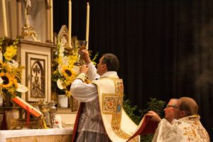 Nach einer kurzen Verschanufpause folgte am Abend um 19 Uhr das Hochamt zu Ehren des Unbefleckten Herzens Mariens und im Anschluss die Aufnahme von 27 neuen Rittern in die Militia Immaculatae durch Hochwürden Pater Stehlin persönlich.