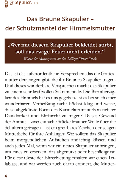 Diese Broschüre hilft uns, das Skapulier besser kennen- und schätzen zu lernen.