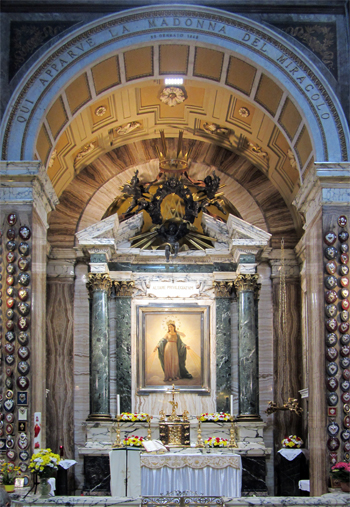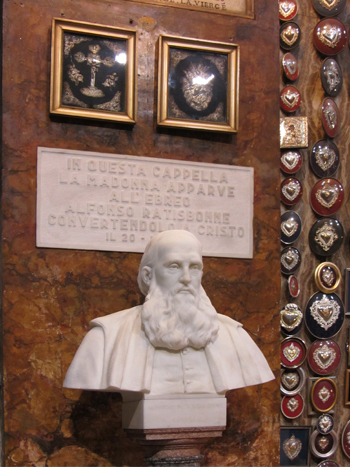 Auf der rechten Seite der Kapelle «Madonna del Miracolo“ ist eine Büste des hl. Maximilian Kolbe zur Erinnerung an die heilige Primiz an diesem Altar und auf der links Seite eine von Alphons Ratisbonne zur Erinnerung an die Erscheinung der Mutter Gottes und seine Bekehrung an diesem Altar.