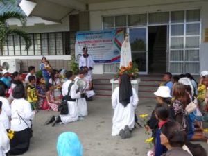 Like past years, Rosa Mystica Mission was attended by some 2,250 patients. The difference this year was that the Mission was a part of Mary’s Mission, the great Pilgrimage of Our Lady of Fatima throughout2100 km running from the South to the North of the Philippines. During the first phase of Mary’s Mission, Our Lady of Fatima had stopped at the city of Alabel, 12 km southeast of General Santos, and there, the Mayor of Alabel had consecrated his city to the Immaculata and 80 citizens had consecrated themselves to Our Lady in the MI. Based on this fact, Rosa Mystica chose Alabel as the site of Mary’s Mission.