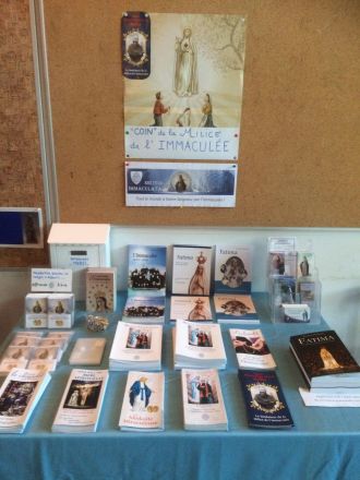 In this corner French Knights can get Miraculous Medals, books according to the spirituality St. Maximilian, books about Fatima and many flyers.