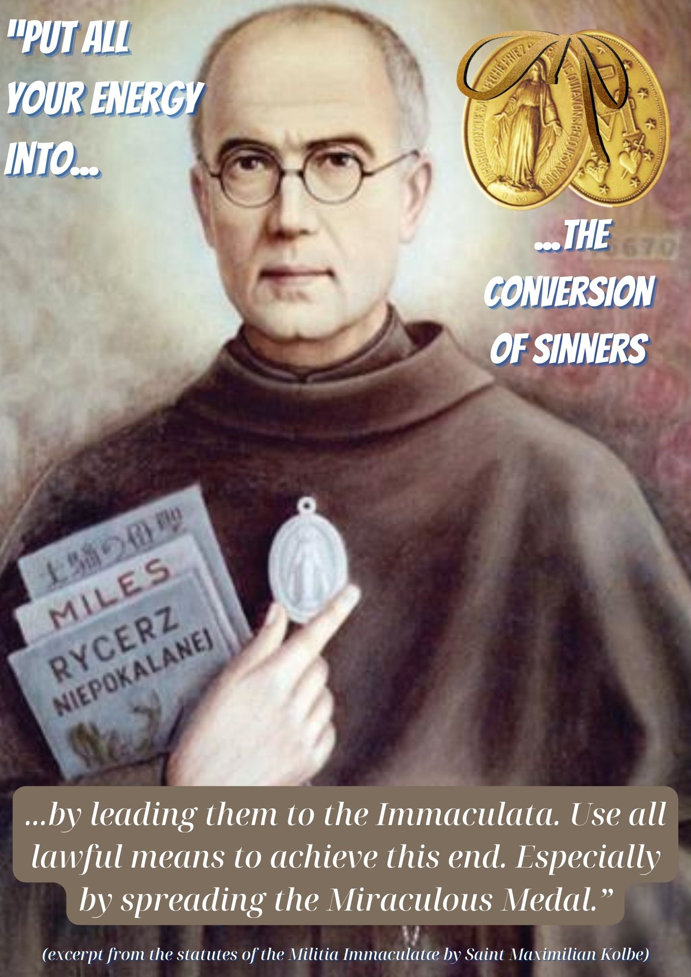 The apostolate of the Militia of the Immaculata has Saint Maximilian Kolbe as patron and spiritual protector. He is a shining example for us because of his zeal for the salvation of souls and the extension of the kingdom of Jesus Christ through the Immaculata. His zeal knew no bounds. More and better than anyone, he worked for the Immaculata.
