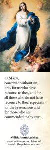 These cards and book marks can be ordered from Kolbe Publications — the Publishing House of the Militia Immaculatae.