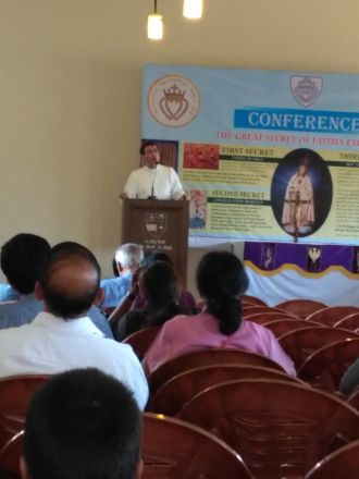 On the 27th of November, on the first Sunday of Advent, the Miraculous Medal feast day, the Goa faithful were graced to have a Conference in Goa on “The Great Secret of Fatima”. Rev. Fr. Karl Stehlin — FSSPX District Superior of Asia was the main preacher at this conference. The Conference was a one day Conference and it was the fourth Conference in Goa. Approximately around 90 faithful from Goa and from outside Goa attended the Conference. After the MC — Mr. Flavio Raposo gave a welcome note to the faithful and a brief introduction about the preacher; Fr. Karl Stehlin began the Conference by leading us to sing the “Veni Creator”.