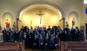 On February 11th, the Feast of Our Lady of Lourdes, St. Pius V Church of Mukwonago, WI enrolled 99 new Knights of the Immaculatæ to the 1st Degree. Despite a raging snowstorm, these fervent parishioners refused to let the inclement weather prevent their coming to the Church on this special day.