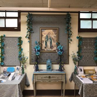 In addition to the traditional M.I. Corner in the St. Pius V Church bookstore, there is also an M.I. station for the propagation of the Faith under the patronage of the Immaculata. Zealous parishioners have provided the means for pamphlets, booklets, parish “business cards,” and Miraculous Medals to be distributed free of charge according to the M.I. Statutes; “to use all valid and legitimate means for the conversion and sanctification of men…as occasions present themselves.” In the future Father Trummer also hopes to set up this same station as a booth in local market festivals throughout the year “to work for the conversion to God of all men…through the mediation of the Immaculate.”