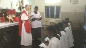 To this end, the Seat of Wisdom would kindle in the hearts of her newly professed knights, a great desire to learn, and an equally great generosity, that led the boys to travel miles to get to the Chapel, to skip their meals to attend classes to learn the Mass responses, spend hours in practice, and then undertake an hour-long arduous journey to return home, week after week, month after month, without fail, for a good two years, while being constantly sustained, encouraged and guided by the most kind priests. And such a zealous endeavour was so blessed by God, so much so that Rev. Fr. Stehlin, (then district superior of Asia) remarked, “I have seen some places in Asia where the serving is good. But the best in Asia is here!”