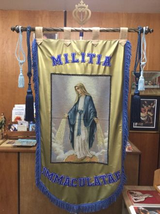 The faithful of the SSPX Chapel (The Holy Name of Jesus) in Gateshead (Great Britain) now have a beautiful banner to draw their attention to their M.I. Corner and to remind them of the Immaculata and her great part in their lives, now and in times gone by. It was suggested by suggested by one of the Knights and painstakingly constructed by Eugene who also provided financial support.