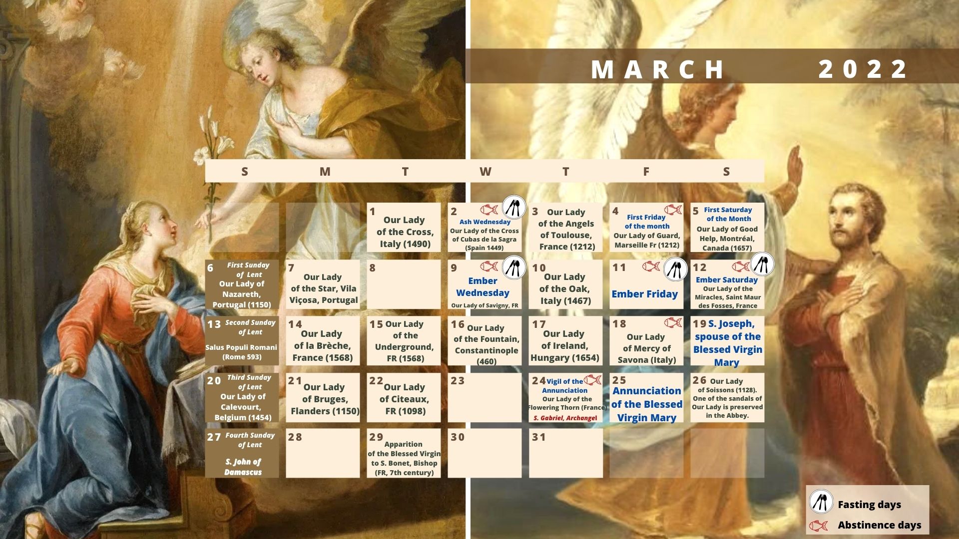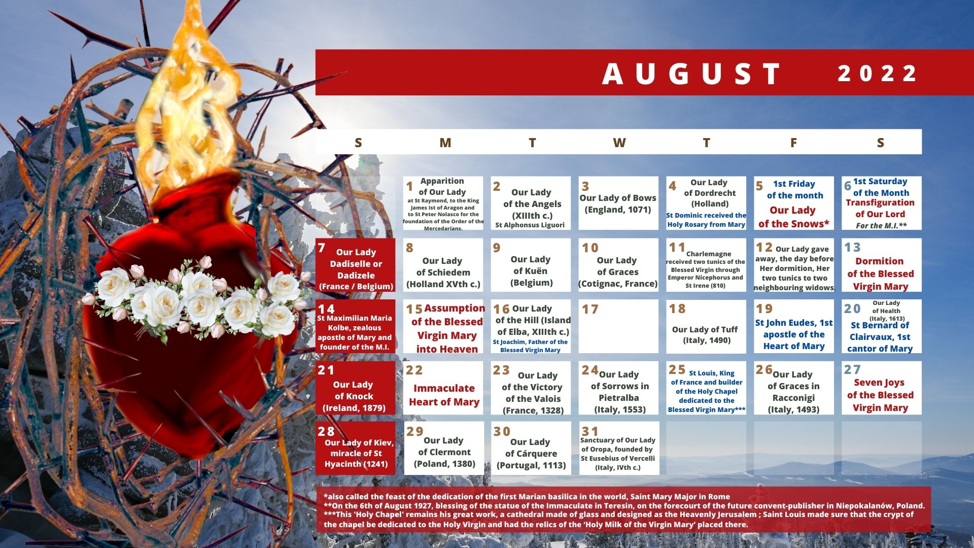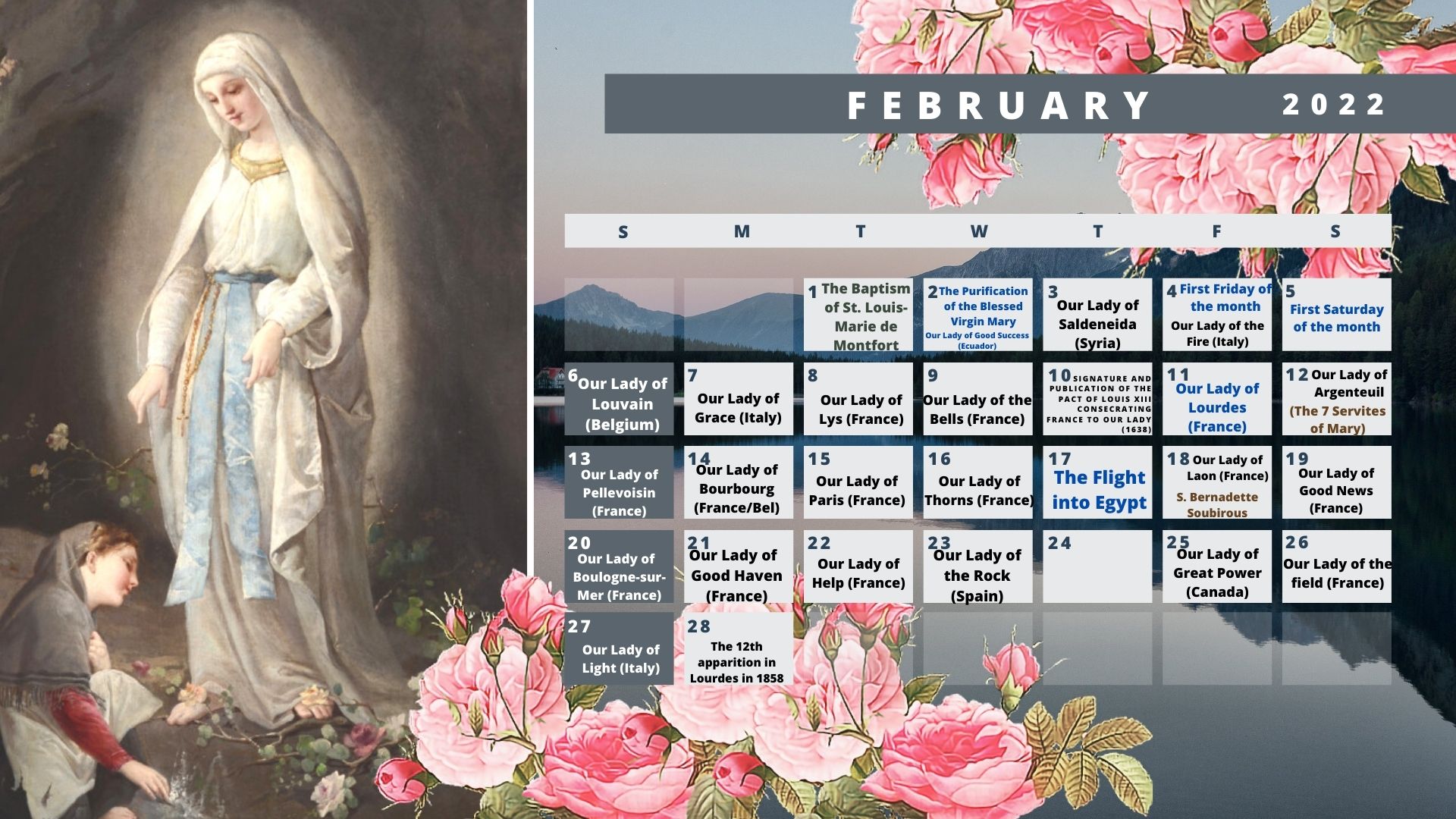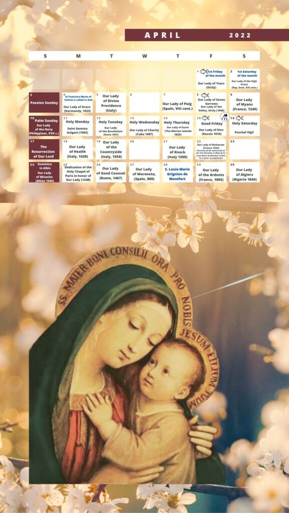 In this new year 2022, we are bringing you a Marian calendar, specially designed for your computer and an easy to download the version for your mobile phone screen. However, the two versions are by no means, for the moment in paper format.