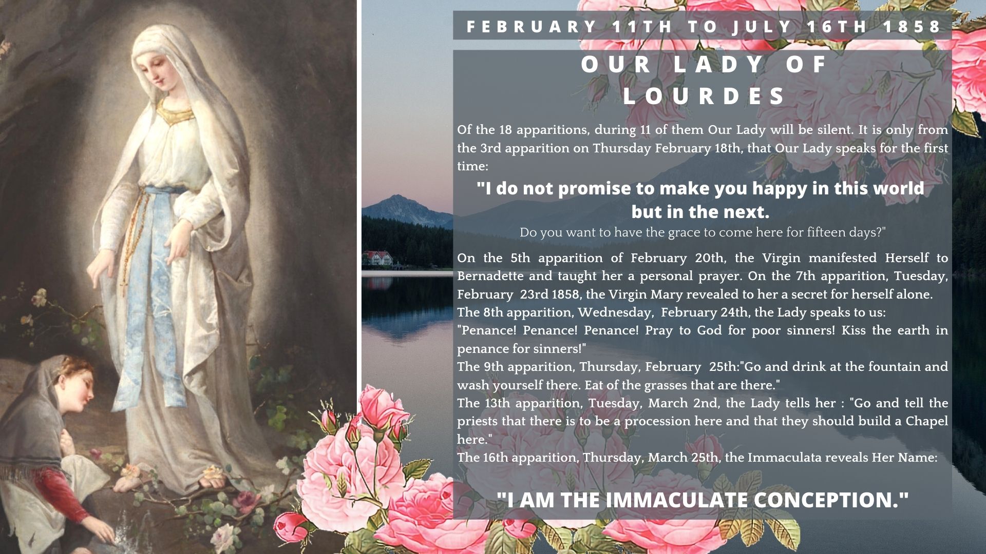 We will publish the pages month after month so that we can follow the Marian feasts given by the Church to honor our Immaculate Mother.