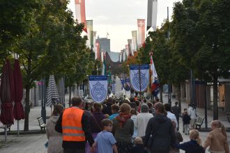On Saturday, 160 attendees from Switzerland, Germany, Austria, and even Poland were given 4 conferences. The high point was a solemn procession from the city of Wil to the pilgrimage chapel of Dreibrunnen. The procession was accompanied by a brass brand, delegations from 4 M.I. groups, and 200 faithful in total. The five M.I. banners looked very impressive. Interested spectators were offered Miraculous Medals.