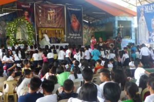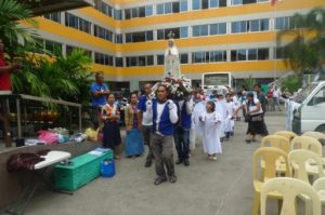 In the course of Mary’s Mission, more than 28 Schools have been visited and been given the Scapular or Miraculous Medal. Some of these schools received the Conference on the MI and 9,190 new Knights were given to Our Lady for Her victory over Satan. May these young knights ranging from 9–20 years of age persevere in their M.I. prayer every day! Due to this apostolate, a considerable number of people walking around Cagayan de Oro, Butuan City and even Surigao will notice children and young people in promenade with blue-stringed Miraculous Medals strung about their necks — the sign of their consecration to Mary in the M.I. This visible influence of Our Lady through Her Miraculous Medal and through the consecration of souls to Her service will have beautiful effects for the salvation of many souls! In the school apostolate, working with classes or school sections, it is possible to deploy the power of the Miraculous Medal, the ensign and weapon of the M.I., in a ceremony of large numbers, recreating as it were the original concept of the M.I., a universal movement under the influence and direction of Mary. Here, however, the follow-up work of the initial grace of consecration is immense, and so we must pray hard that Our Lady stirs up more members for the M.I. to do this important work.
