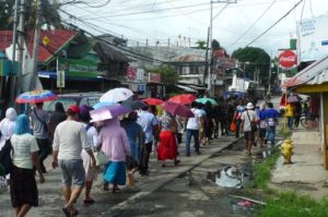 Mary’s Mission Pilgrim Virgin Walkers (PVWs)— the generous souls who man-power the carossa and catechize souls — prepare the Mission stops both spiritually and materially. Led by a team leader who determines speed and stops, the PVWs with Our Lady walk towards the appointed place for the evening Mission. As they proceed, the Catechists, as time and opportunity offer, will speak to folks along the road. If a priest is accompanying the Virgin at the time, they will prepare them for the Scapular, and when the Priest arrives, he will impose the Scapular upon them. If the priest is not present, and supplies last, they will instruct them in the Miraculous Medal, give them one, exhorting them to the prayer of the MI daily. In all cases, they will invite them to Mary’s Mission Mass to take place at 6:00 PM at the appointed place. Sometimes, people are so happy at the passage of Our Lady, that they light candles and stand at attention at the doors of their homes. Occasionally, the sick are visited, confessed and blessed, and where needed, receive the Sacrament of Extreme Unction. On other occasions, souls who are touched by Our Lady will follow Her for several kilometers. Many times, people offer prayer petitions and donations. It can be quite moving to see the very poor gather together pesos from their own shelter and from their neighbors and press these into the hands of the Priest for Our Lady.