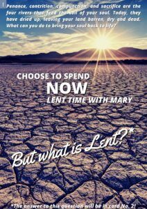 Lent is a special time to get into good practice. Too often from one Lent to the next we stop what we have started. Good habits disappear to make room for the same old bad habits, the same routine, the same neglect. Why? Because surely we do not include Mary with us in our Lent.