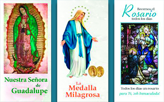 In Spanish we prepared 3 new flyers: Our Lady of Guadalupe (Nuestra Senora de Guadalupe), The Miraculous Medal (La Medalla Milagrosa), and Rosary (Rosario).