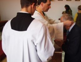 At the end of a Lenten Retreat, Fr. Stehlin enrolled 49 new Knights in Poland.