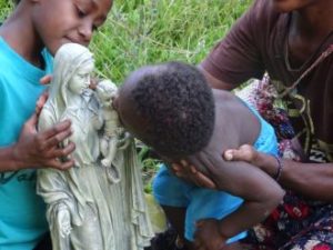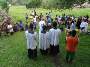 Rev. Fr. Louis Bochkoltz wrote: “Last Saturday (January 08), I came back from our very fruitful mission in Vanuatu. We had few new knights of Our Lady, thanks be to God. We also made a shrine to Our Lady in bamboo that we blessed the day before the 6 baptisms and 1 marriage.”