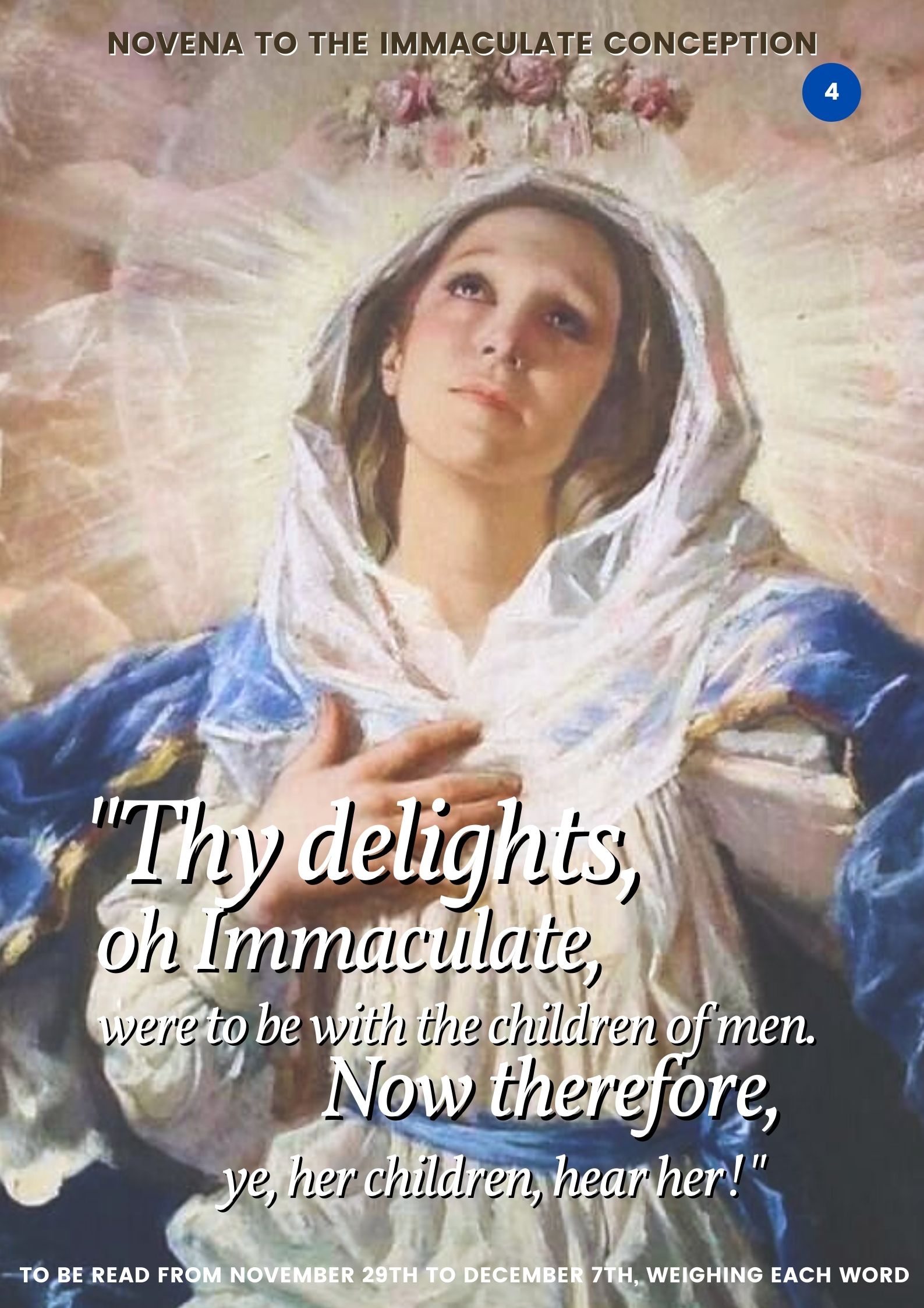 Ave Maria! In this series composed for the novena preparing us for the beautiful and great feast of the Immaculate Conception, we invite you to read short but profound exerpts slowly and with care so that, by the grace of God, our souls may extract from them the glistening nectar and honey contained in them in this time of Advent.