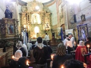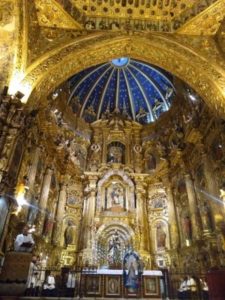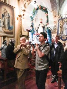 Holy Mass was at 8.30am in the Church of the Immaculate Conception, which is part of the monastery of the Conceptionist Franciscan sisters. Every morning there were outings to the different churches and the monasteries, with their museums showing a rich collection of Christian art from the 17th and 18th century. Not only were the representations of Our Lady with her different names – Virgen de la Merced, La Inmaculada, María Auxiliadora, Nuestra Señora de Guadalupe and others – well worth seeing, but also the crucifixes with Our Lord in different expressions of his passion and death, and the traditional liturgy vestments and utensils. Every evening at 5.30pm we were taught songs in Spanish about Our Lady of Buen Suceso, which we sang at the Serenade on the first and last evening and on the processions. Fr. Adam Purdy gave us a conference on the meaning of the apparitions and messages of Our Lady of Buen Suceso of the Purification and on the life of the Abbess of the Conceptionist Monastery, Mariana de Jesús Torres, to whom Our Lady of Buen Suceso appeared from 1594 until her death in 1635. Our Lady warned about a crisis of world proportion that would afflict the Holy Catholic Church in the 20th century. She told her that the light of faith would be nearly extinguished, heresies would abound, and impurity and sensuality would inundate the world and the Church. Priests would neglect their sacred duty becoming fond of money and losing their spirit, and so placing themselves in great danger. Mother Mariana offered her life as a pleasing sacrifice for the Church of the 20th century.