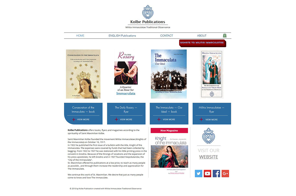 The publishing house of the Militia Immaculatae called Kolbe Publications.