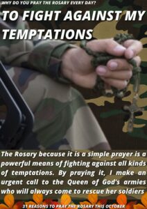 “For this intention we can offer up all our efforts, troubles and sufferings to the Immaculata, so that she might conquer the world. Once Napoleon was asked what was needed to win a battle. He answered: “Three things are needed: Money, money, and still more money!” Just so, when it is a matter of sanctifying souls, one needs prayer, prayer and still more prayer. If prayer is lacking, the soul becomes weak. One will have precisely as much from the treasury of graces as one draws from it.”