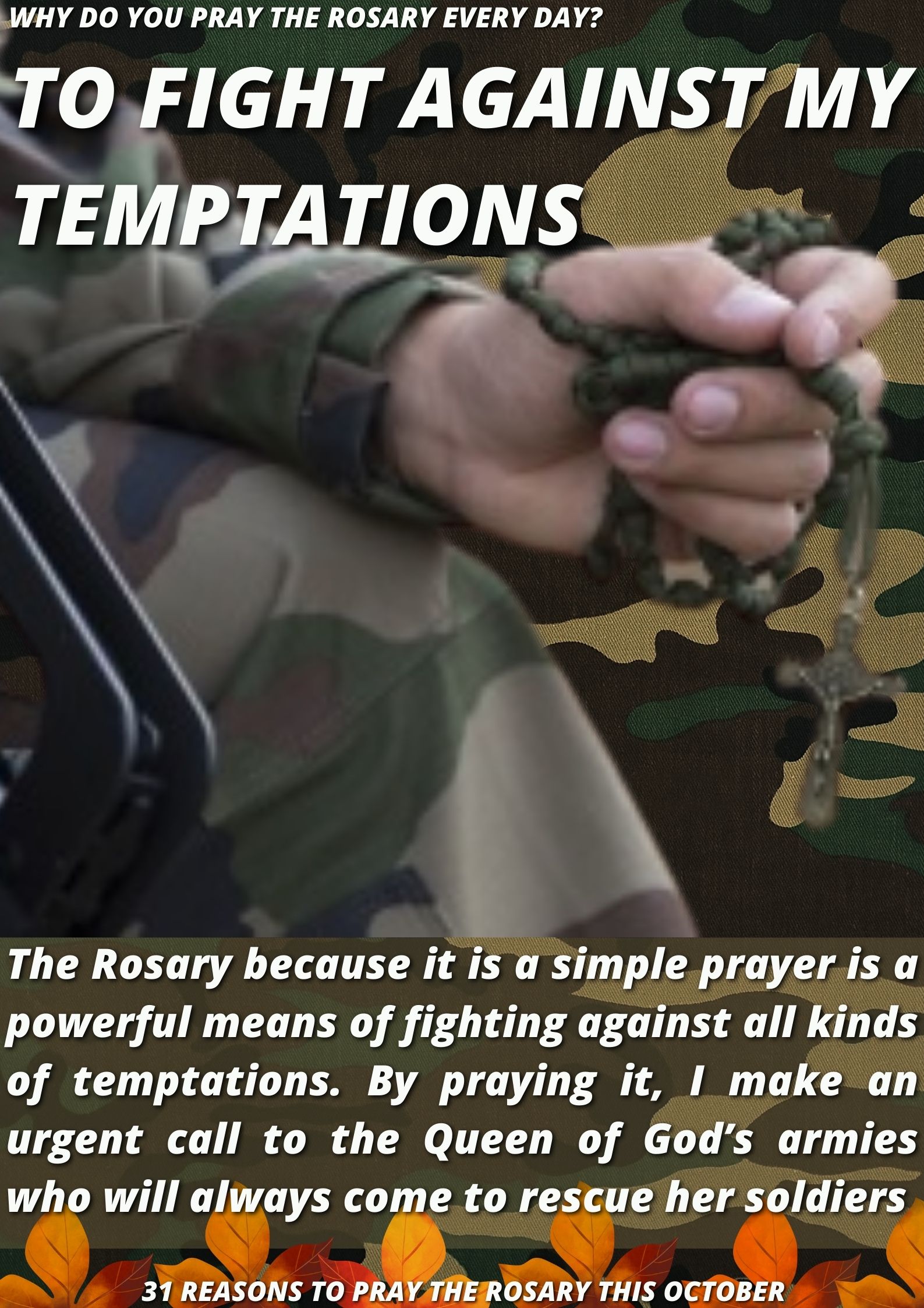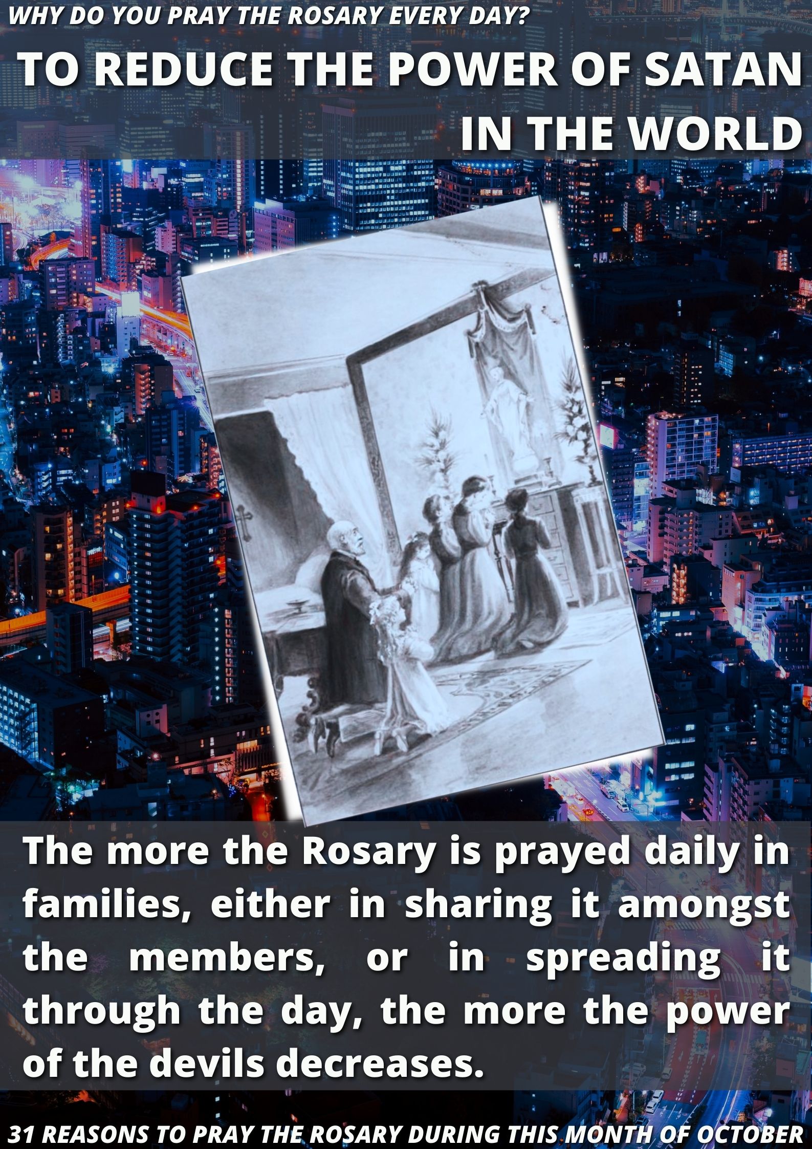 Satan knows that quite well. He knows that he always wins, when it is a question of natural means. He is a pure spirit, is keenly intelligent to a far higher degree than we are, and therefore he understands all this much better than we do. But when a person reaches higher, for supernatural help in prayer, then he trembles. Then begins his battle, no longer with human beings, but with God, and he knows that he will be defeated. Therefore he tries by all means to keep the soul from praying, through distractions, dryness, fatigue, discouragement, etc., which we personally experience again and again.” (Conference on the stages of the interior life, Konferencje św. Maksymiliana Kolbego, Niepokalanów 1990, p. 189)