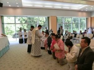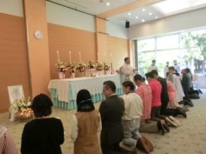 Pilgrims arrived in Akita on the 2nd of May in the evening, and the pilgrimage formally commenced the next morning. Each day began with a Low Mass celebrated by Father Onoda followed by a High Mass sung by Father Stehlin. A series of spiritual conferences preached by the latter on the theme of “Peace” ensued.