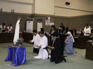 Then preparations were made and the official agenda scheduled a spot for the renewal of the city consecration that had been made in November of 2016 during the first Mary’s Mission Tour. Then, on the day appointed, after City business had been conducted, the city of Davao renewed its consecration to Mary by the very active and earnest participation of the acting Vice-Mayor, who was standing in for the actual vice-Mayor (who had permitted and facilitated the whole thing, but was absent — perhaps because he is Protestant).
