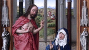 Consider, for example, in this light Jesus’ solemn statement: “The Son of Man – the Son of the Virgin Mary – will come in the glory of His Father with his angels, and then he will reward each one according to his deeds” (Mt 16:27). Here Jesus clearly speaks of his double human and divine origin. The earthly virgin mother is ineffably united with the heavenly Father.