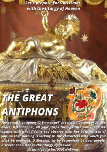 From December 17 to 23 and more precisely, the moment chosen to make this sublime appeal to the charity of the Son of God heard, is the hour of Vespers, because it is on the Evening of the world that the Messiah has come.