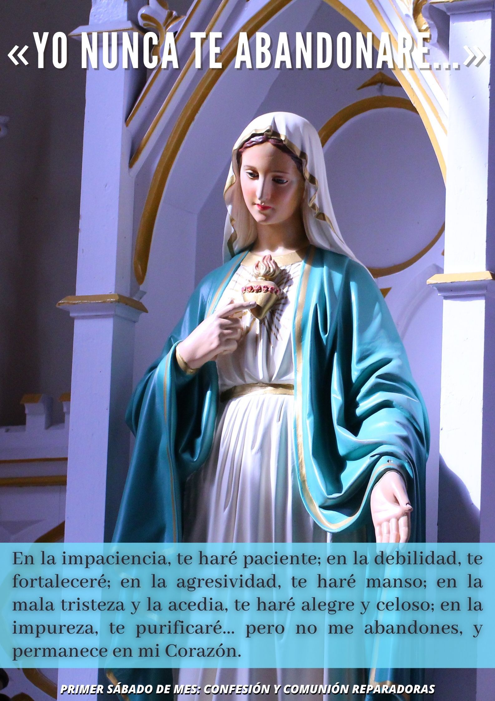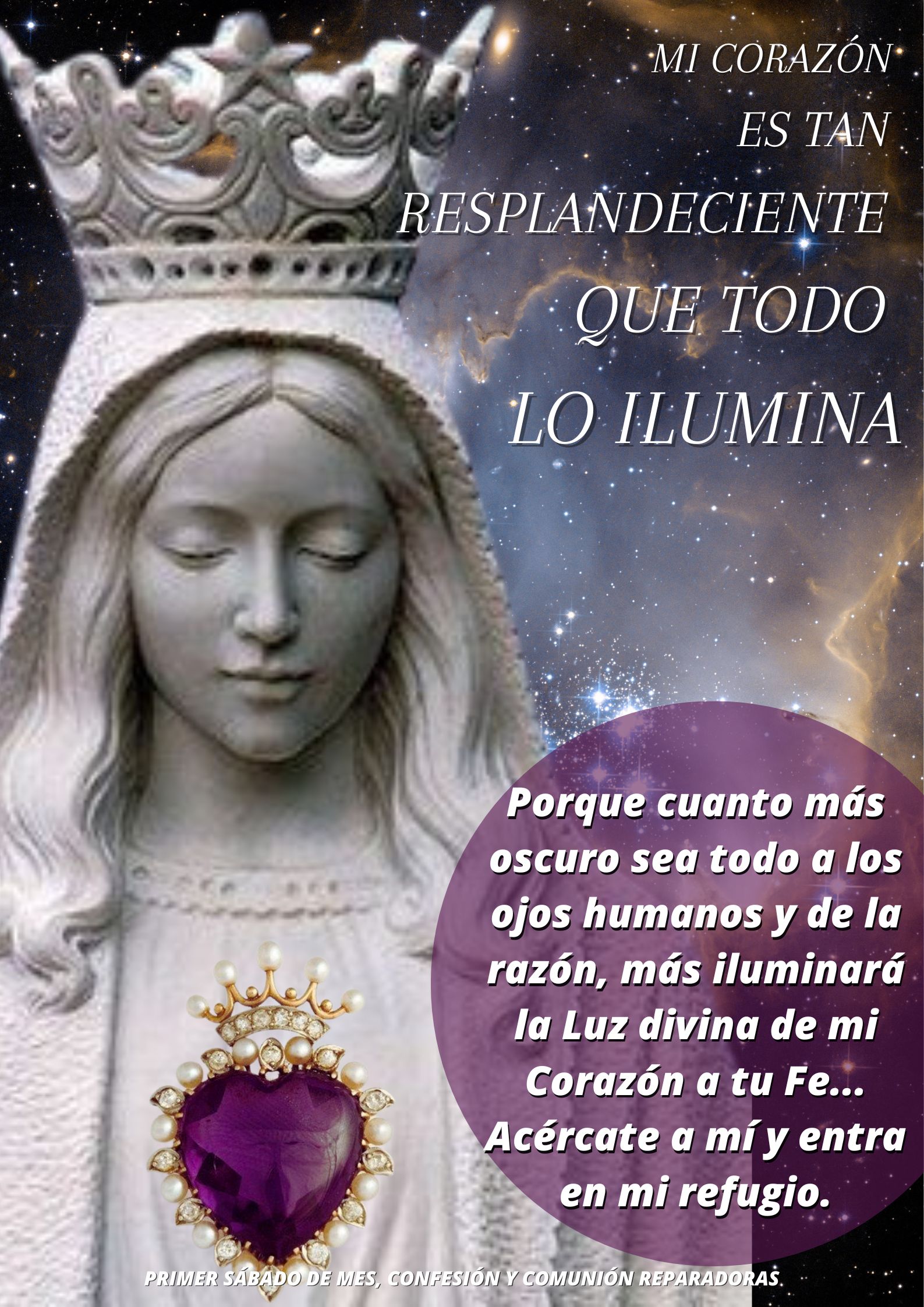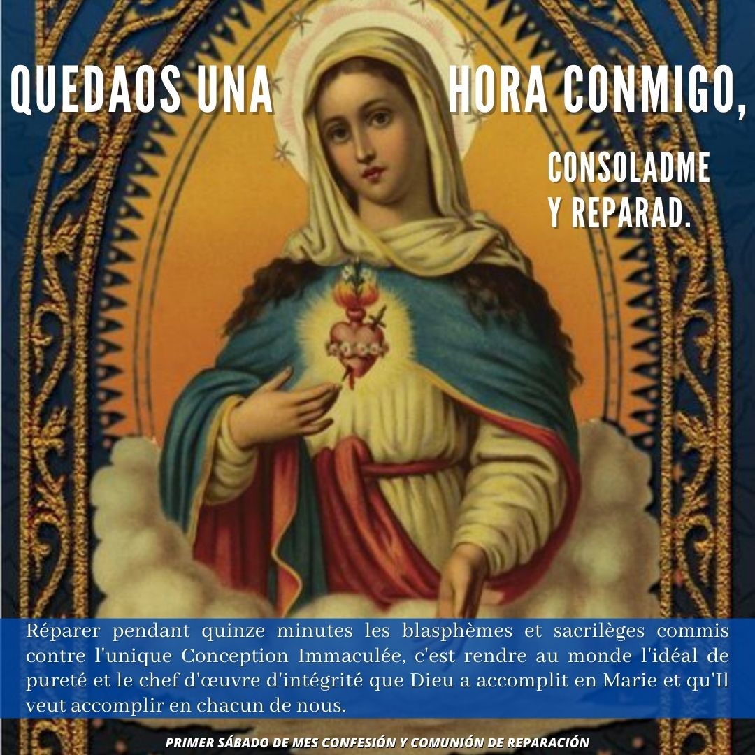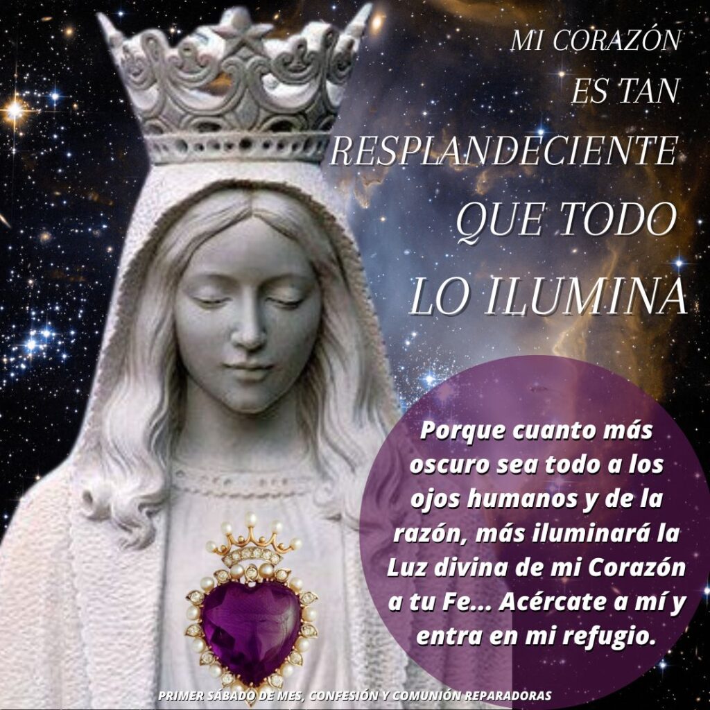 ¡Ave María! Te invitamos a encontrar aquí las tarjetas virtuales concernientes a los primeros viernes y sábados de mes, así como unos pequeños textos de meditación que en ocasiones les agregamos. ¡Buena lectura y disfruta compartiendo!