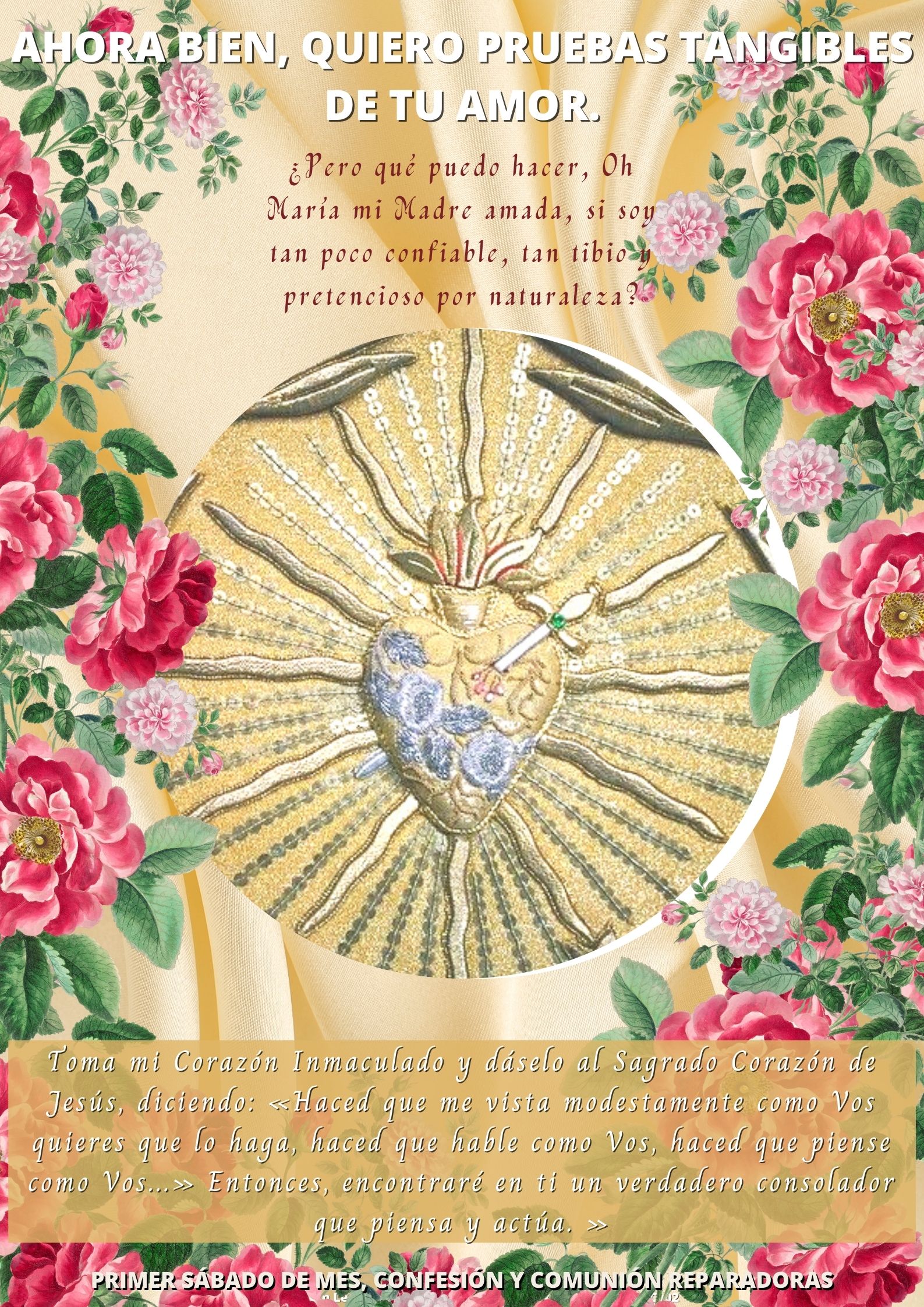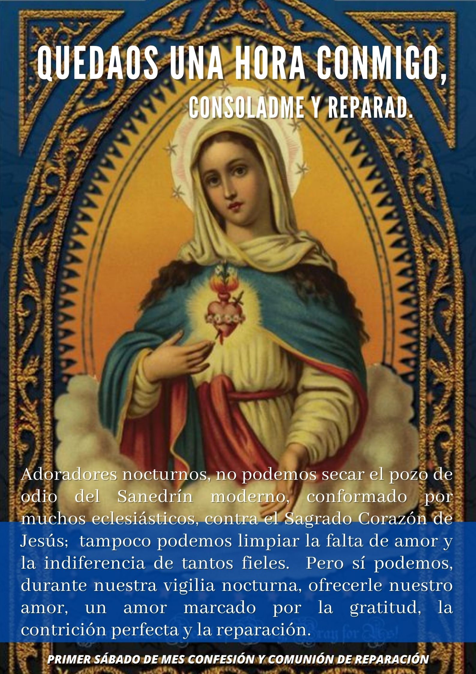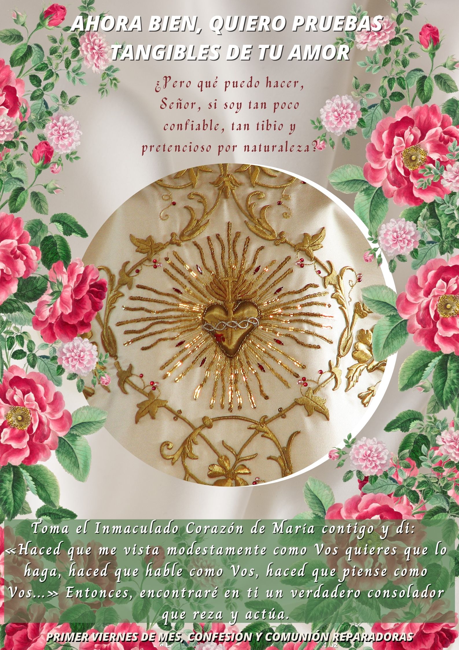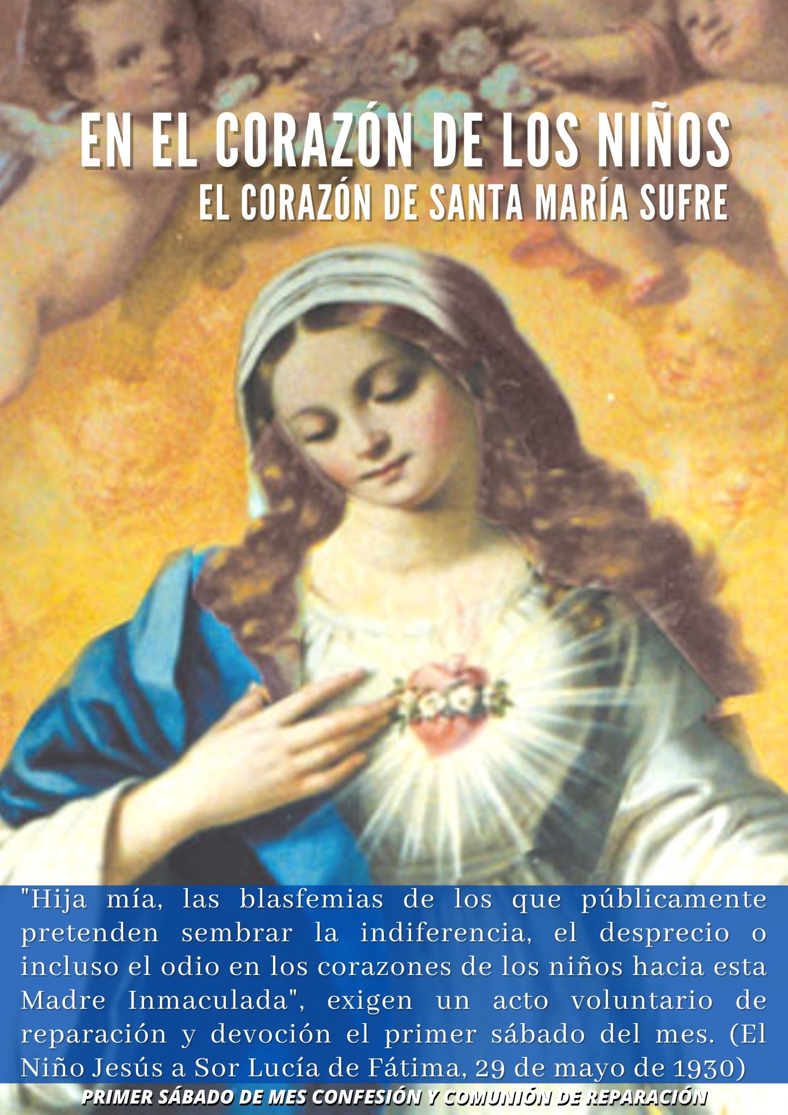 ¡Ave María! Te invitamos a encontrar aquí las tarjetas virtuales concernientes a los primeros viernes y sábados de mes, así como unos pequeños textos de meditación que en ocasiones les agregamos. ¡Buena lectura y disfruta compartiendo!