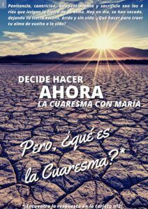 La Virgen María es la guía segura de la perfección. Por ello, para tener una Cuaresma que dé frutos, y frutos a largo plazo, es necesario, incluso imprescindible, comenzar esta Cuaresma con María. Vamos pues a seguir a María en estos 40 días que ella pasó en su casa de Nazaret mientras Jesús iba al desierto.