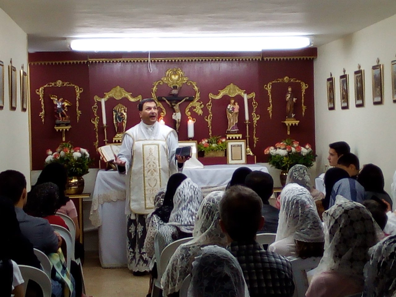 Primer Sábado de mes. Compartimos las imágenes de la Santa Misa en honor al Inmaculado Corazón de María presidida por el R.P. Karl Stehlin (Director de la M.I.) visitando hoy la capilla Nuestra Señora del Perpetuo Socorro. Medellín – Colombia.